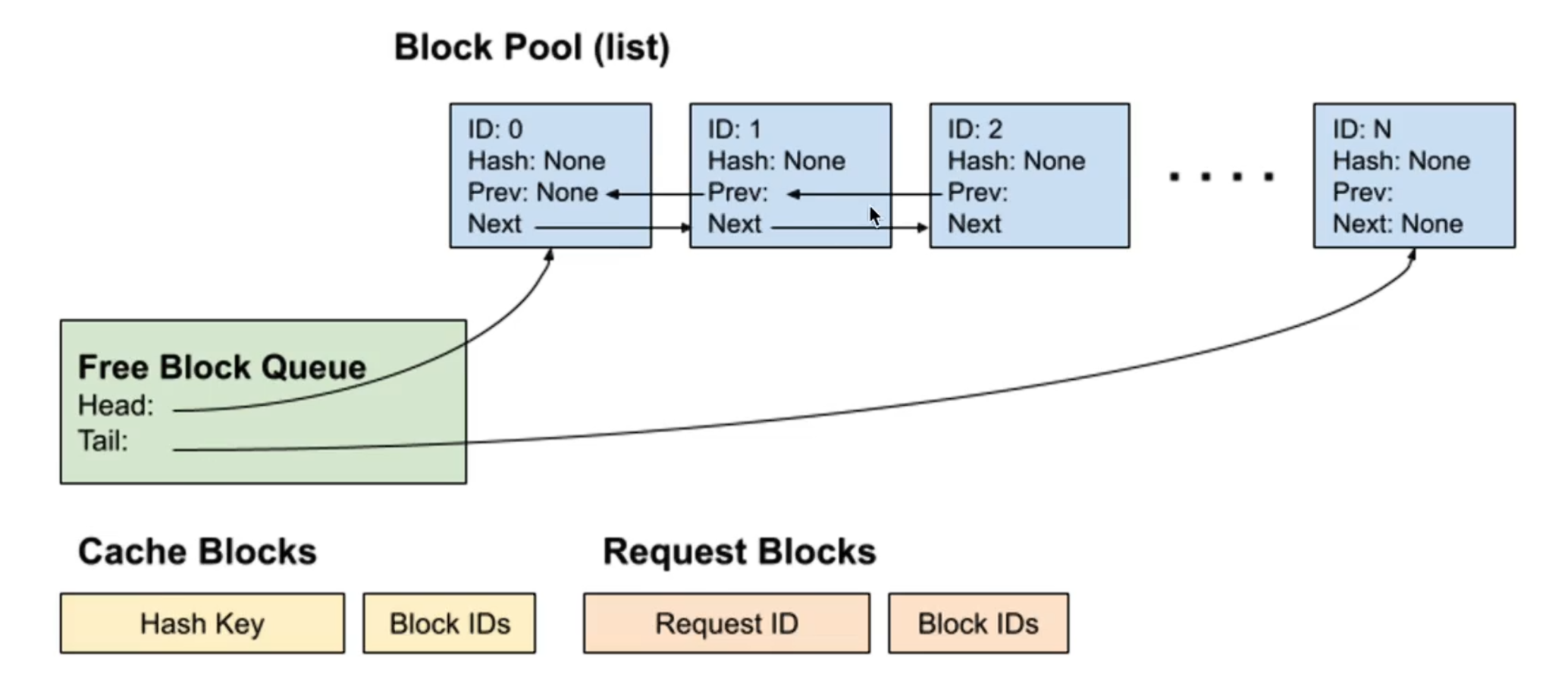 github.com/vllm-project/vllm/blob/v0.8.4/vllm/v1/core/kv_cache_utils.py#L187-L188 这里可以看看链表的一些操作达到O(1)复杂度的添加删除移动